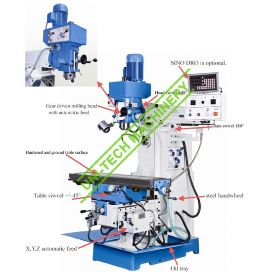 4. Capstan-controlled quill feed for drilling, manual micro-feed for milling 3 automatic quill feeds