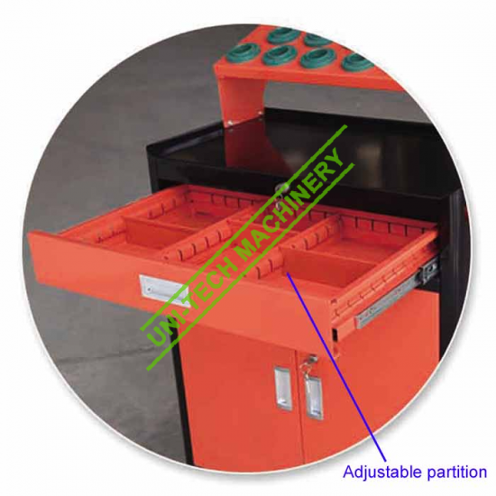 3. The top drawer with the adjustable partition-board could divide the drawer inside space to load assorted tools separately.