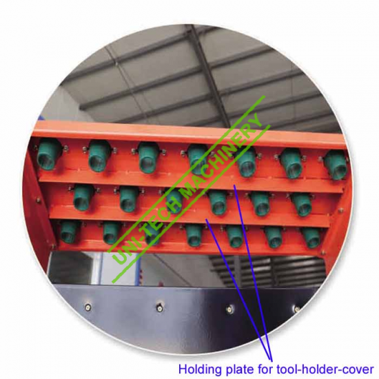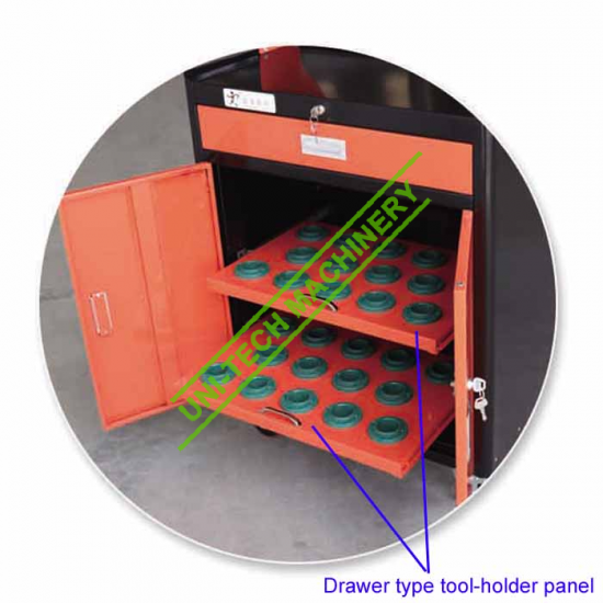 4. There are two pieces shed panel with the tool-holder 14 pieces tool holders for each panel in the cabinet. And it can be pulled out and push back, convenient to take the tool holder.